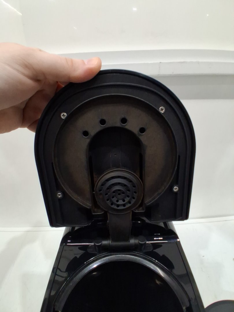 Item shows signs of previous use such as mild coffee debris inside unit. Item tested for power.