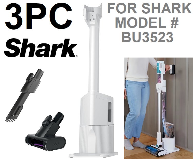 3PC SHARK CORDLESS STICK VACUUM CHARGER STAND AND ACCESSORIES FOR THE CLEAN & EMPTY CORDLESS VACUUM MODEL# BU3523 - WHITE