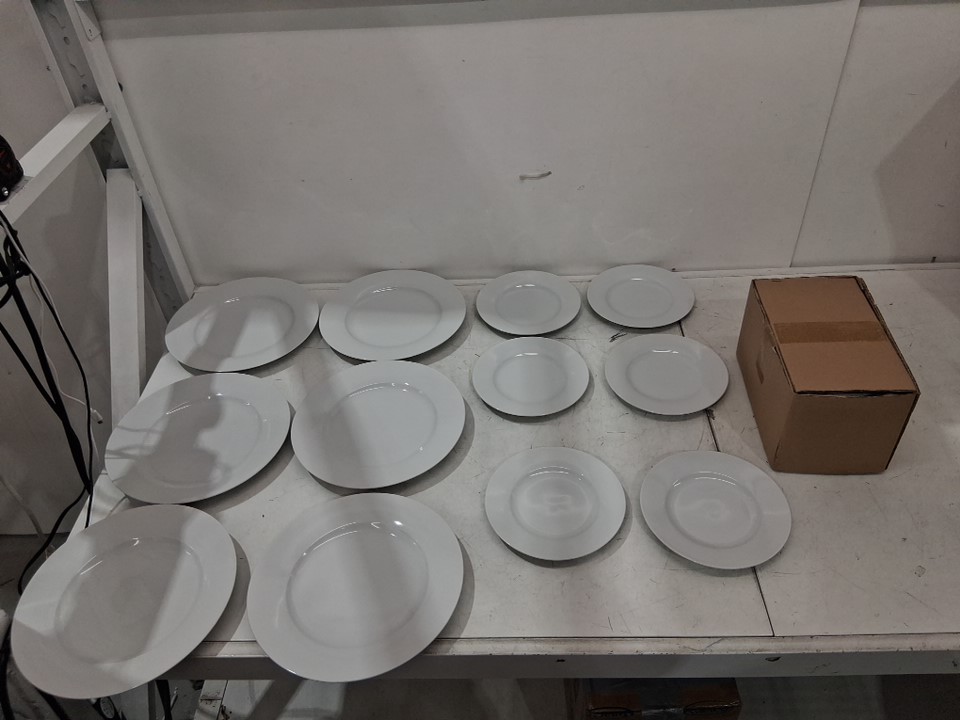 18pc Amazon Basics Dinnerware Set small and large plates, bowls - serves 6 - white (model:CX01BI)