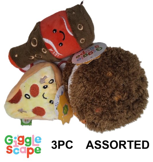 3PC ASSORTED GIGGLE SCAPE FOOD PLUSH - MULTICOLOR