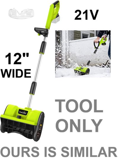 Electric Cordless Snow Shovel Remover Tool Only-12" wide - 21V battery - green/black