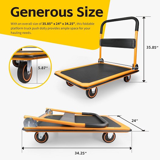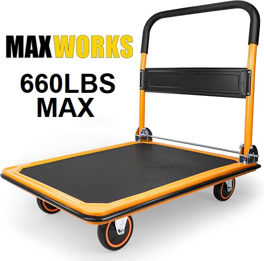 MAXWORKS FOLDING PLATFORM TRUCK Push Dolly With Swivel Wheels - 660lbs cap - Yellow/Black (MODEL: 80877)