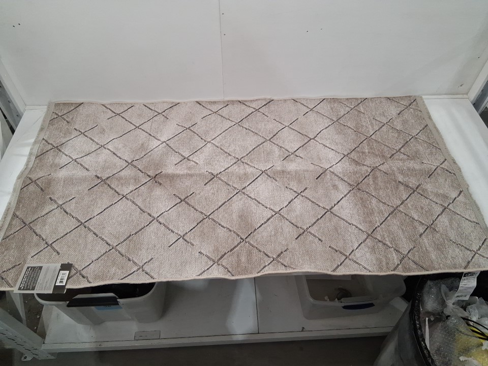 *GENERIC CONDITION STATEMENT* PLEASE BE AWARE THAT THE STOCK IMAGE USED MAY NOT 100% RESEMBLE THE COLOUR OF THE ITEM BEING SOLD. The images used and sizes given are taken from the online retailer. Rug has been inspected by our staff and laid out on our warehouse floor for full inspection and photos. Due to this nature of handling there might be light dirt or dust on the item from handling or storage in our facility at time of pick up.