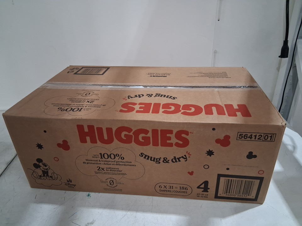 186pk huggies snug and dry diapers - size 4 - 22lb to 37lb - disney mickey mouse