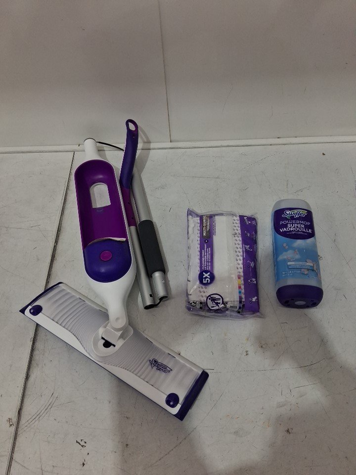 Swiffer PowerMop Multi-Surface Mop with batteries and mopping pads included for Floor Cleaning - purple/white (model: 1842580)