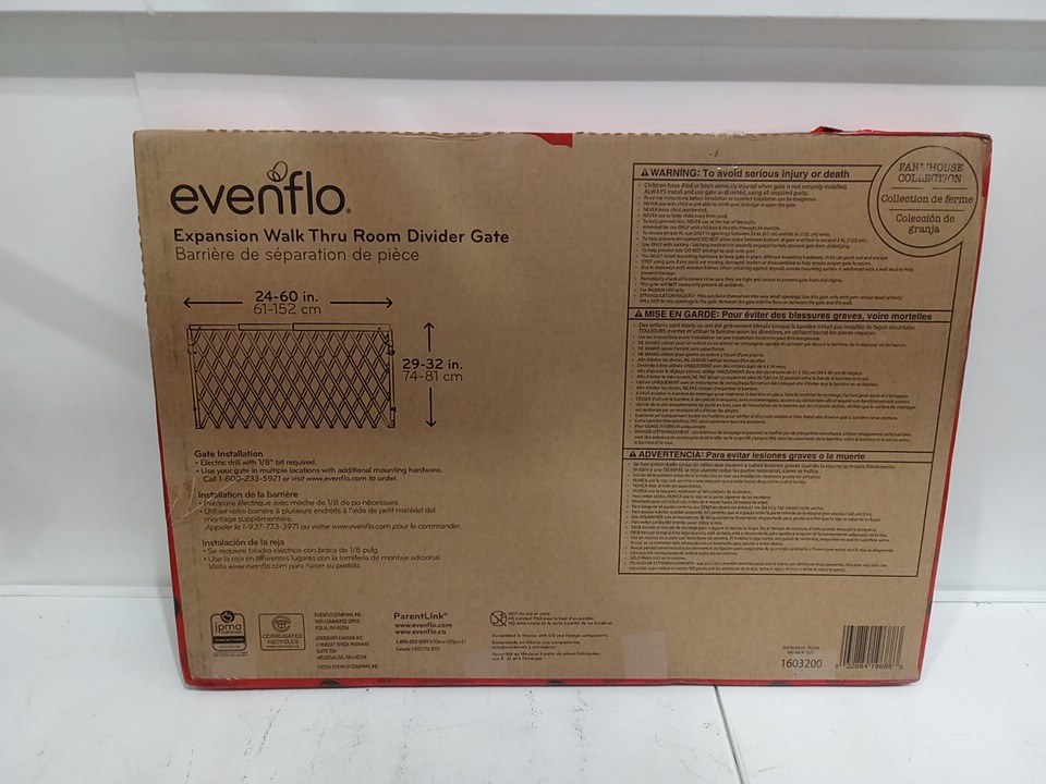 EVENFLO WALK THRU EXPANSION FOLDING BABY/PET GATE - 32" X 24" TO 60" - FARMHOUSE COLLECTION BROWN (MODEL: 1603200)