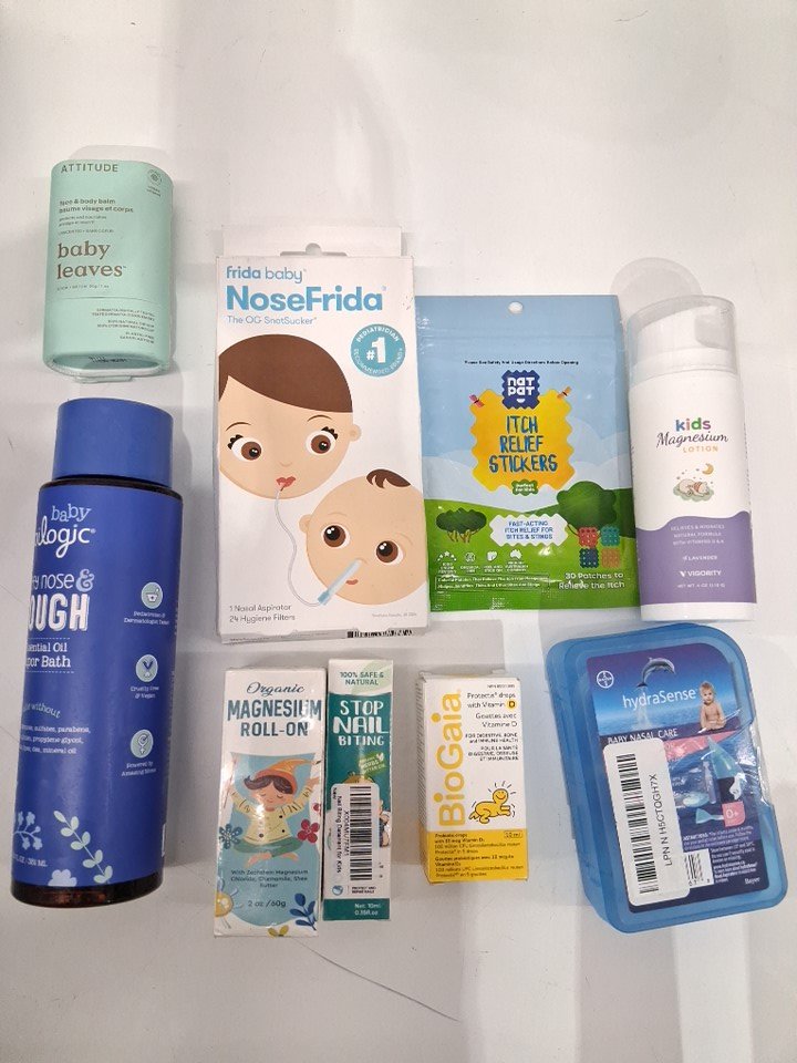 9 ASSORTED BABY HEALTH COLD/FLU ITEMS -ASSORTED TYPES/SIZES/BRANDS