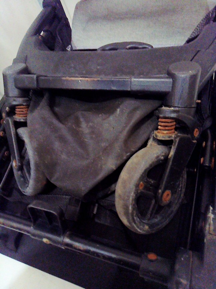 There are dirt marks, scratches and rust on the outside and on the wheels. (SEE PHOTOS)