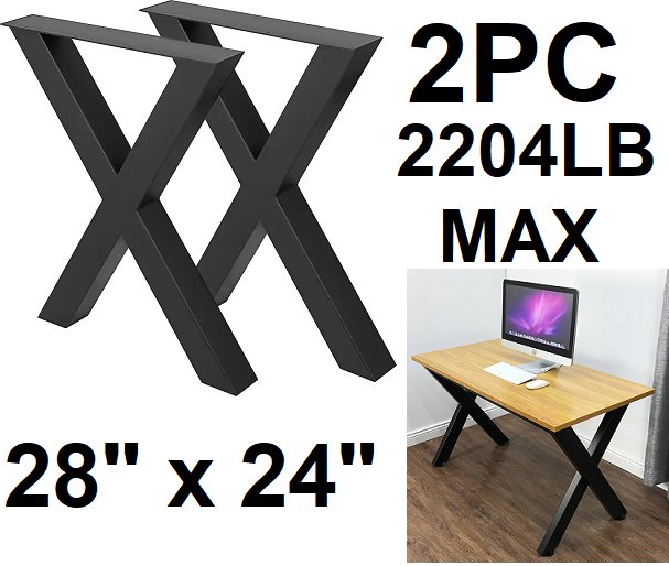 2PC HEAVY DUTY Steel Table Legs FOR DINING TABLE - 28" X 24" - 2204LB MAX - BLACK (MODEL: x720600 )