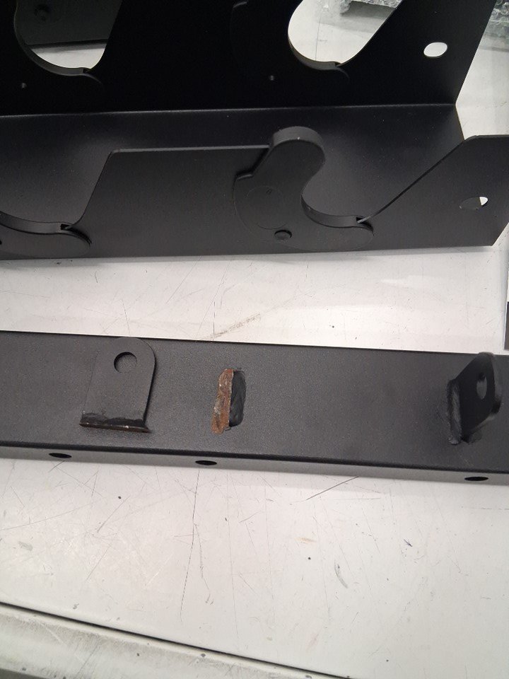 One stabilizer bar for piece for dumbbell rack has snapped cleanly off during shipping, can be welded back on. Hardware is still sealed