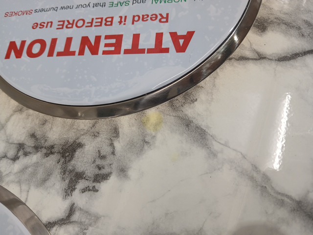There is some staining and discoloration around the burners. Tested for basic power only.