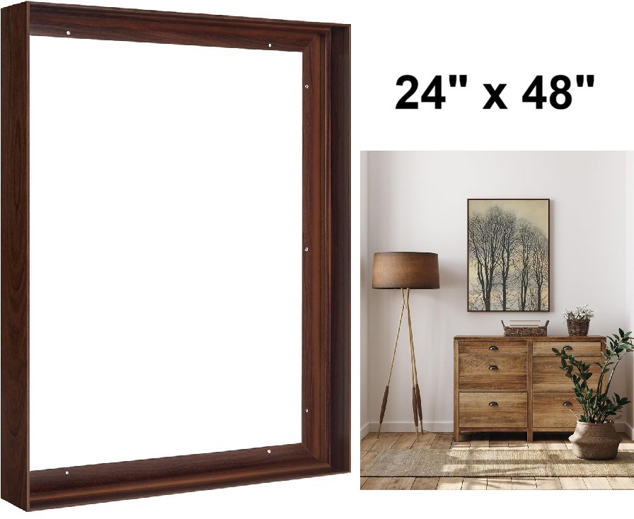 folkor diy Metal Floating canvas Frame - 24" x 48" - 1.5" deep - Walnut