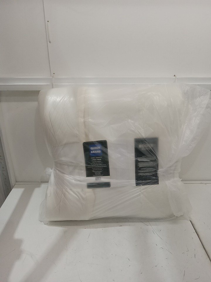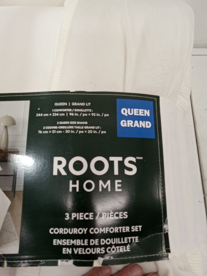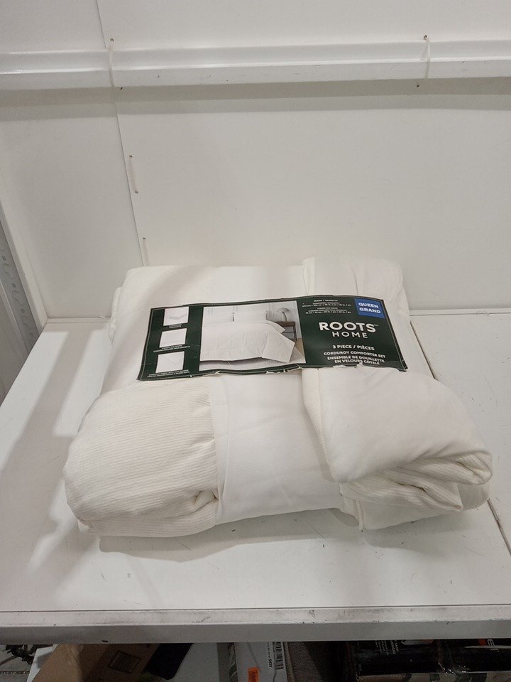 3pc roots home corduroy comforter set - queen size - white (model: 1706587)
