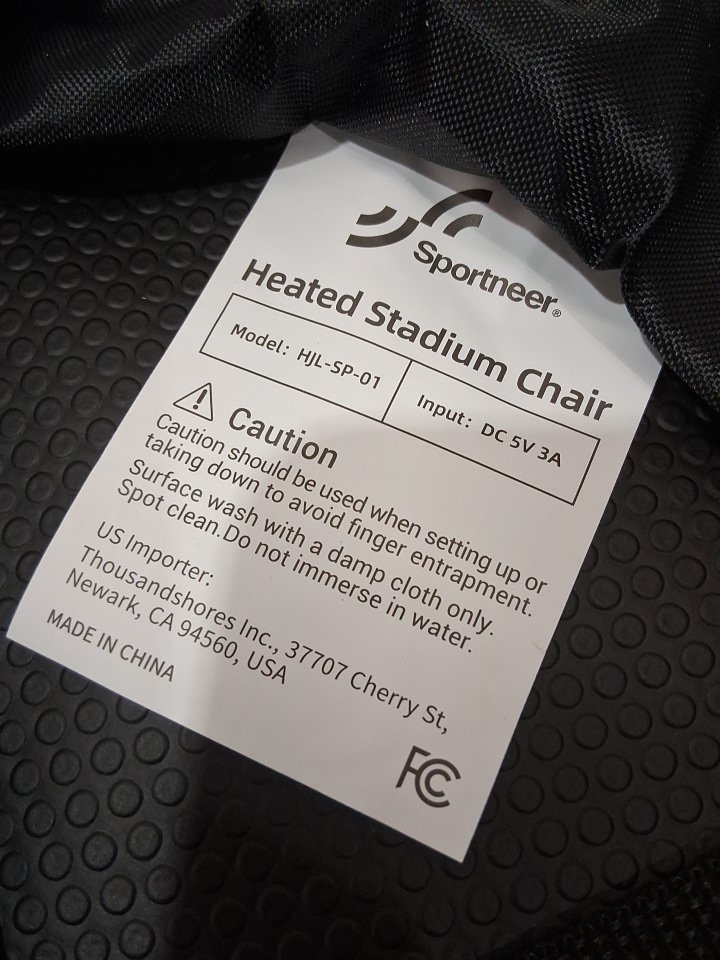 2PK Sportneer portable Heated Stadium Seat - 20", 3 Heated Modes, with Back Support, Armrest, 6 Reclining Positions - black (model: HJL-SP-01)
