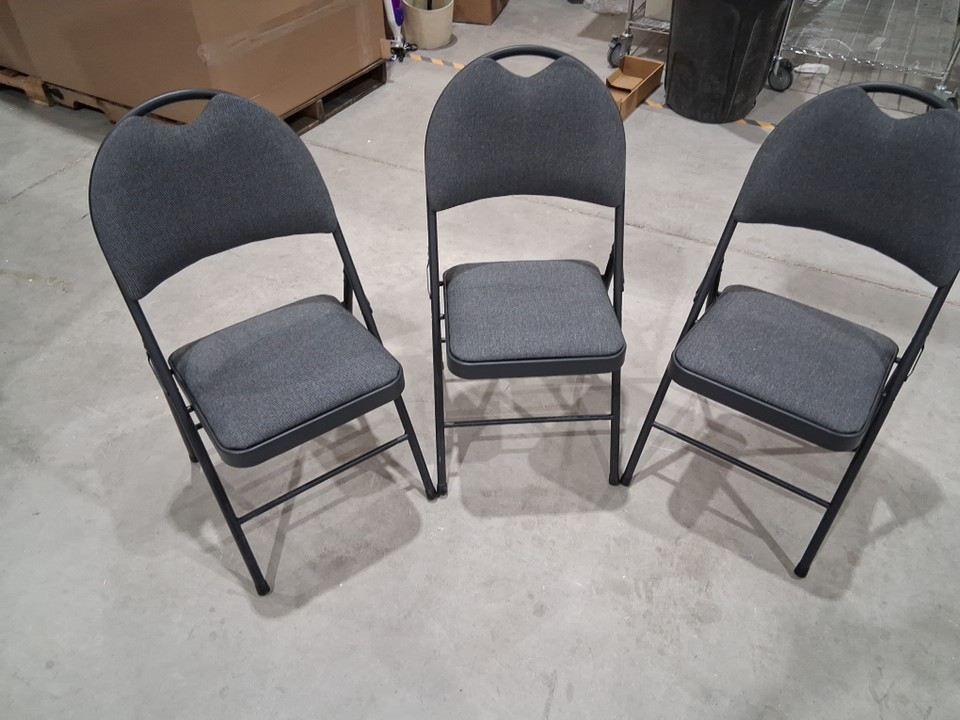 3pk star elite fabric padded metal folding chairs - 19.5" x 18.5" x 39" - grey (model: 1731062)