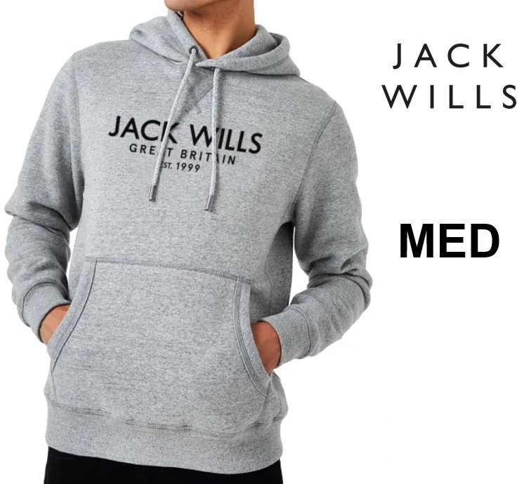 men's jack wills pull over string hoodie - medium - grey (Style: 1912838)