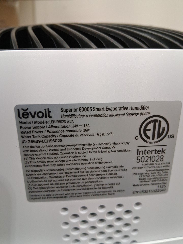 levoit evaporative humidifier superior6000s - 14.37" x 14.37" x 22.24" - white (model: leh-s602s-wca)