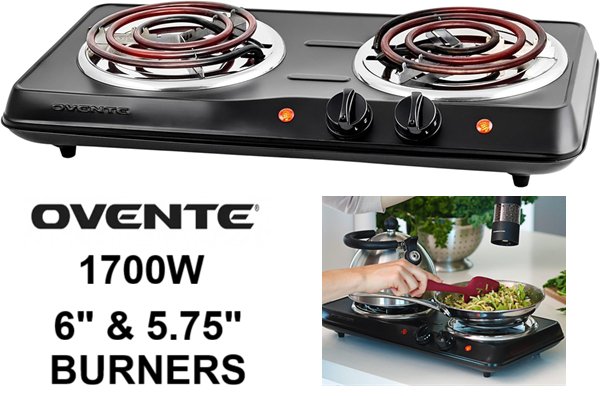 OVENTE Electric Countertop Double Burner cooktop-6" and 5.75" burners- black-(model:‎BGC102B)