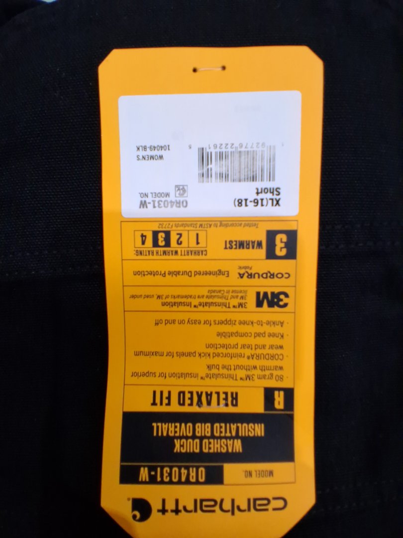 Women's Carhartt Relaxed Fit Washed Duck Insulated Bib Overalls - xl (16-18) short - BLACK (STYLE: OR4031-W)