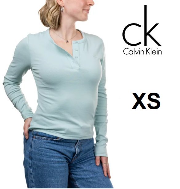 Women's Calvin Klein Woven long sleeve henley shirt - EXTRA small - light blue - (style: 1907725)