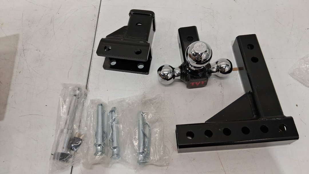 TYT Adjustable Trailer Hitch TRI-Ball Mount with Lock - 2" reciever - 10000lb MAX - 5" drop/rise'- 2" , 2-5/16" AND 1-7/8" CHROME ball - black/silver (MODEL:‎TABM003-CA)