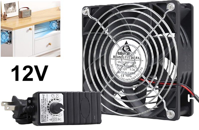 gdstime small ac powered brushless Axial Flow Amplifier Window Cooling Fan - 12V - black (model:‎GDP1238B12N45D55230-CA)