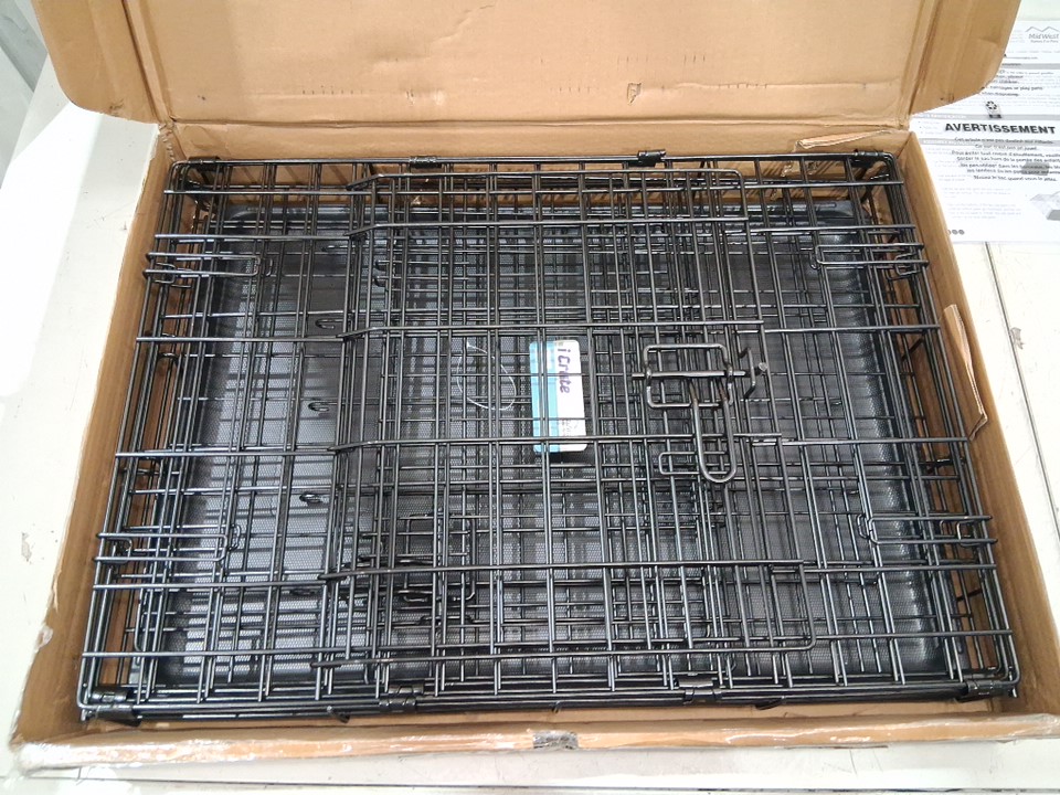 MIDWEST ICRATE DOUBLE DOOR FOLDING METAL DOG CRATE WITH LEAK PROOF TRAY - 24" x 18" x 19" (small) - BLACK (MODEL: 1524DD)