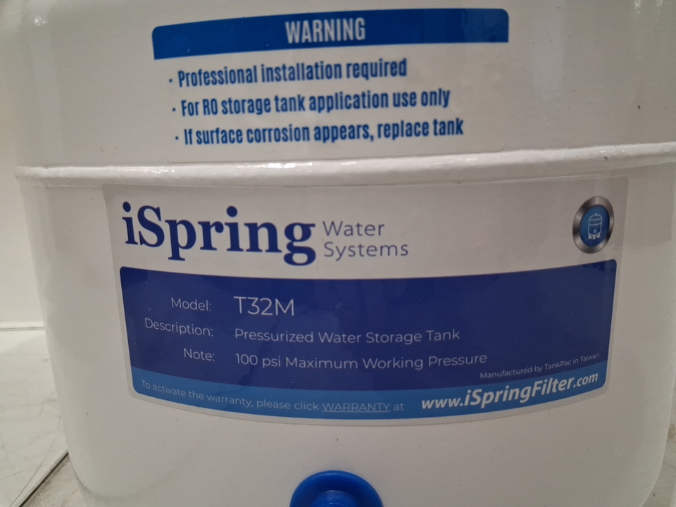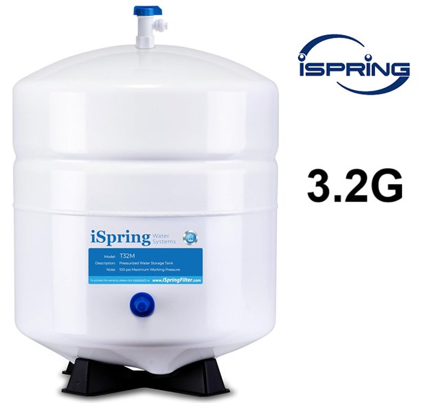 ISPRING PRESSURIZED WATER STORAGE TANK WITH BALL VALVE FOR REVERSE OSMOSIS RO SYSTEMS - 3.2GAL - (MODEL: T32M)