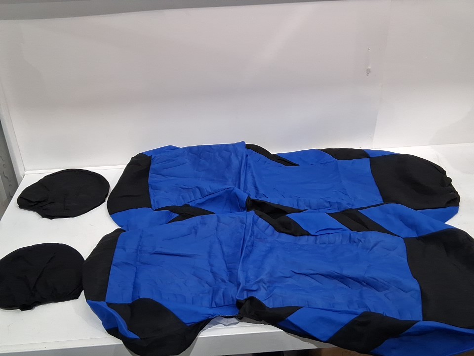 4PC Front Car Seat Cover Set fits most models - 2 seat covers and 2 headrest covers - Black/blue