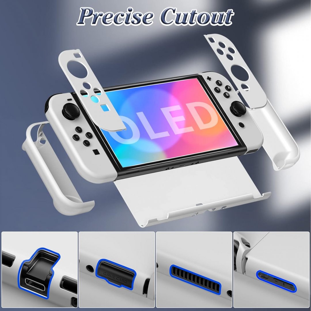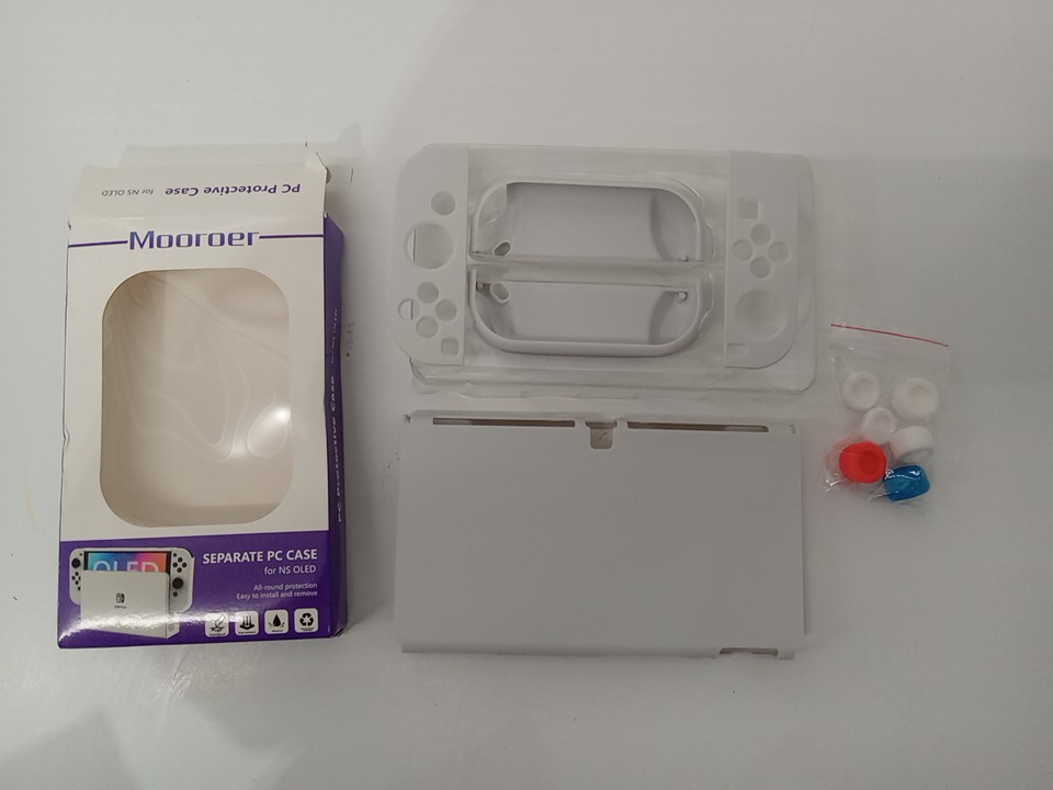 2 (11PC) Mooroer DOCKABLE Protective hard case & joycon controller thumb caps for Nintendo Switch OLED - White
