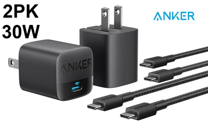 2PK Anker Charger Kit with USB-C to Lightning Cables ( FOR IPHONES 8-14 / SE ) - 30W, 6FT - BLACK