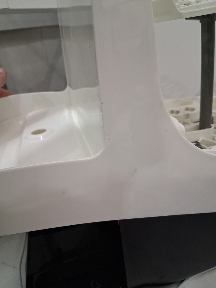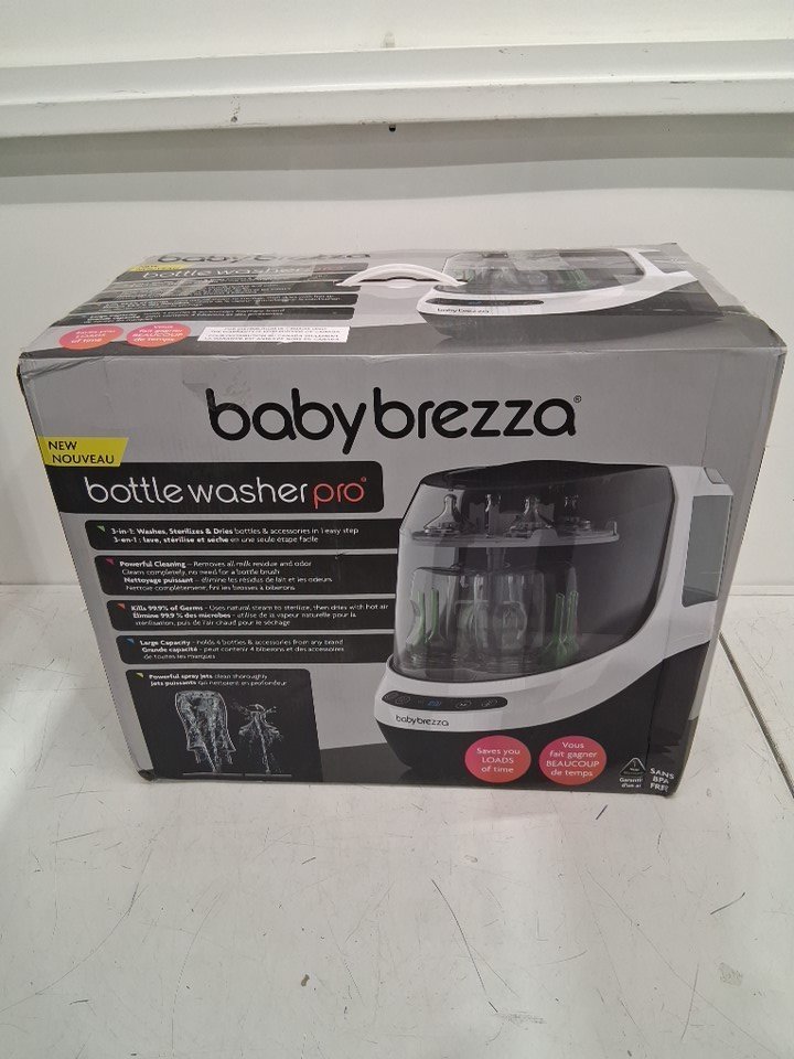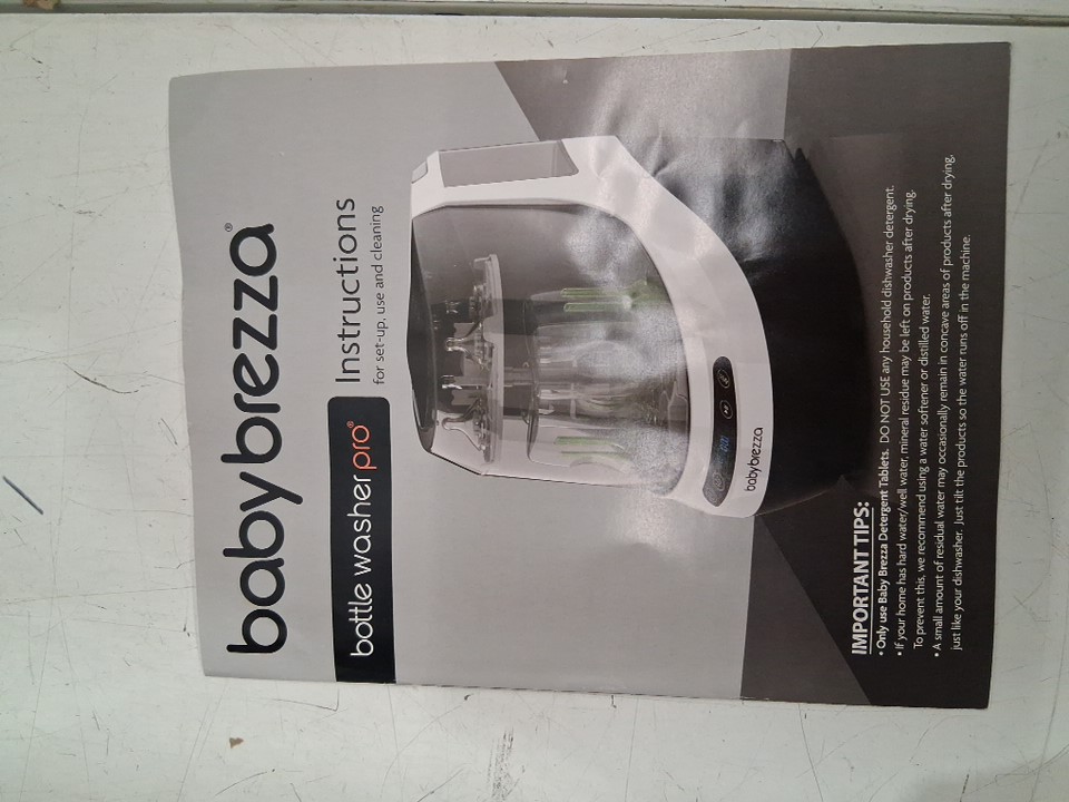 There are water droplet stains in both of the tanks due to previous use, and there is a couple of small/faint scuff marks on the sides of the bottle washer. *Please note that the clean water tank is missing its lid*. You may be able to find a replacement online or find an alternative solution. (Please see photos) The baby Brezza was tested for basic power.