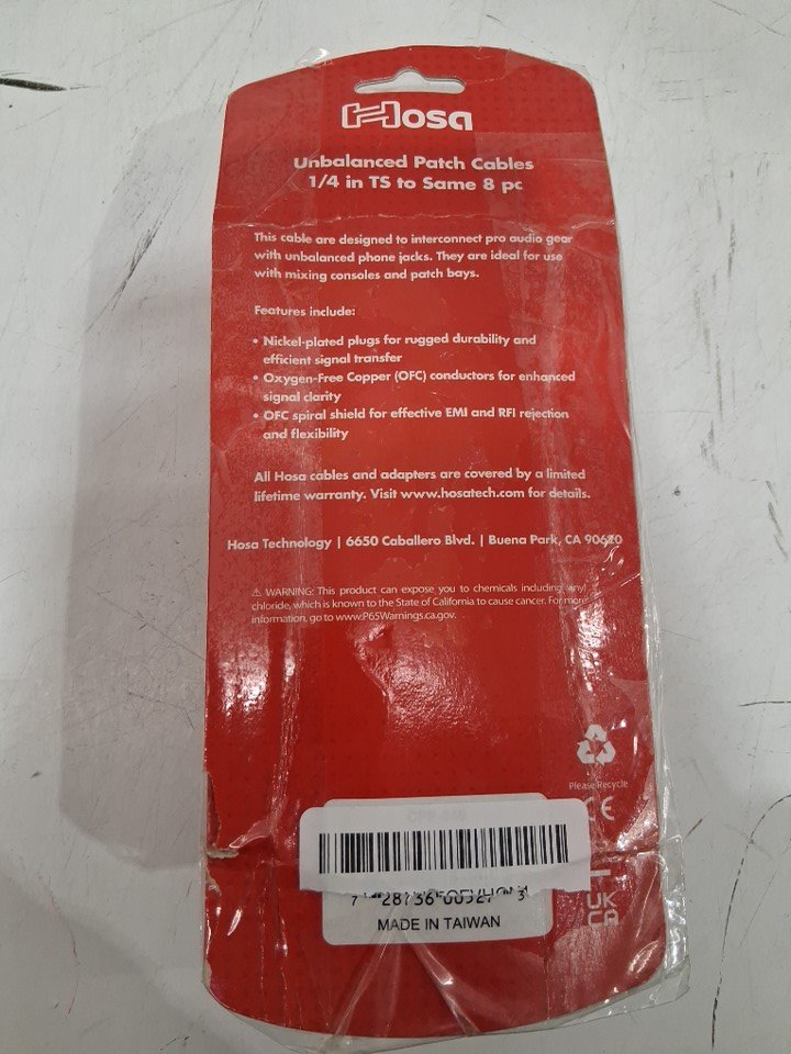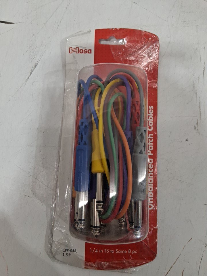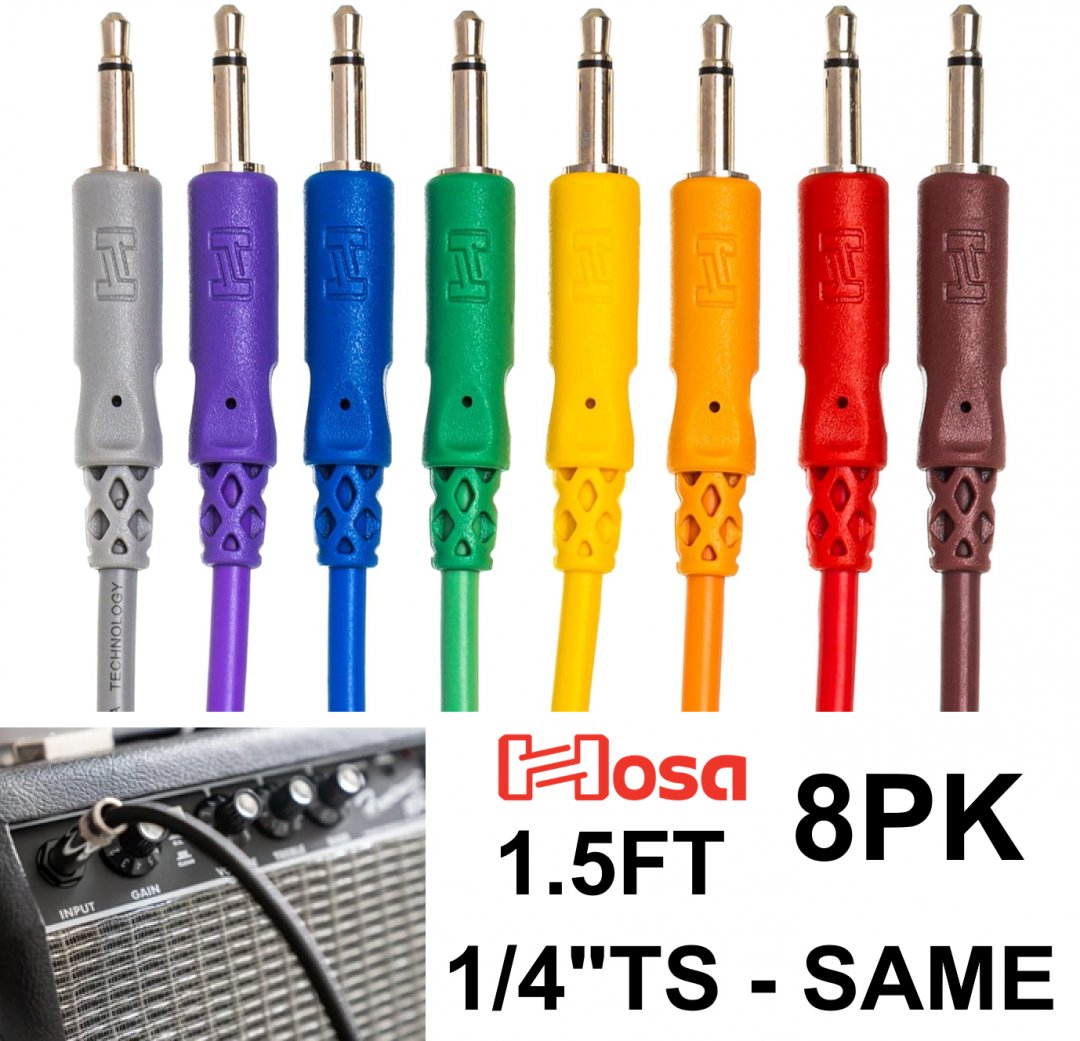 8PK hosa unbalanced patch cables - 1.54FT long - 1/4" TS - SAME - multi-coloured (Model: CMM845)