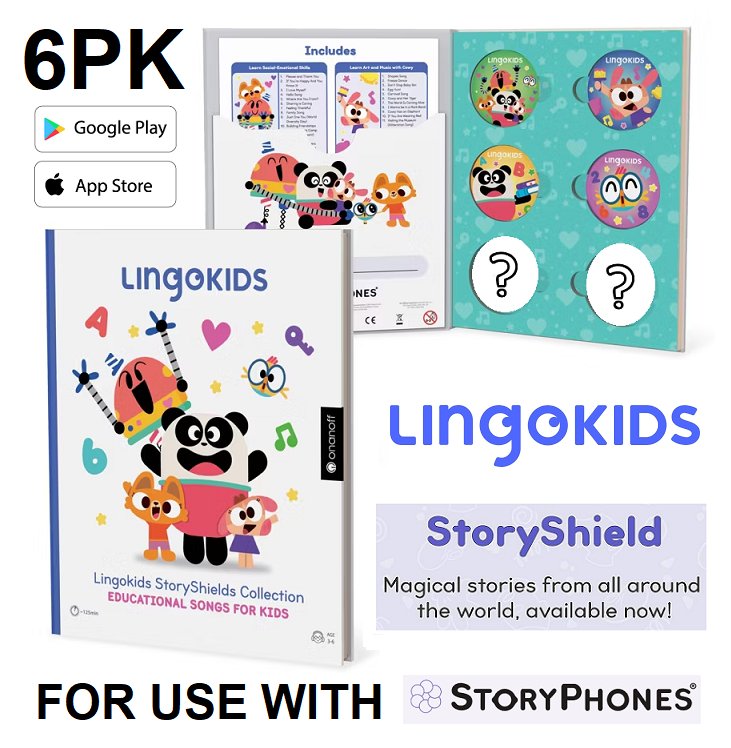 6PK ONANOFF LINGOKIDS STORY SHIELDS WITH EDUCATIONAL SONGS, STORIES, & LESSONS FOR USE WITH STORYPHONES VIA APPLE/GOOGLE PLAY APP STORES (MODEL: ON-STORYBOOK-LK1)