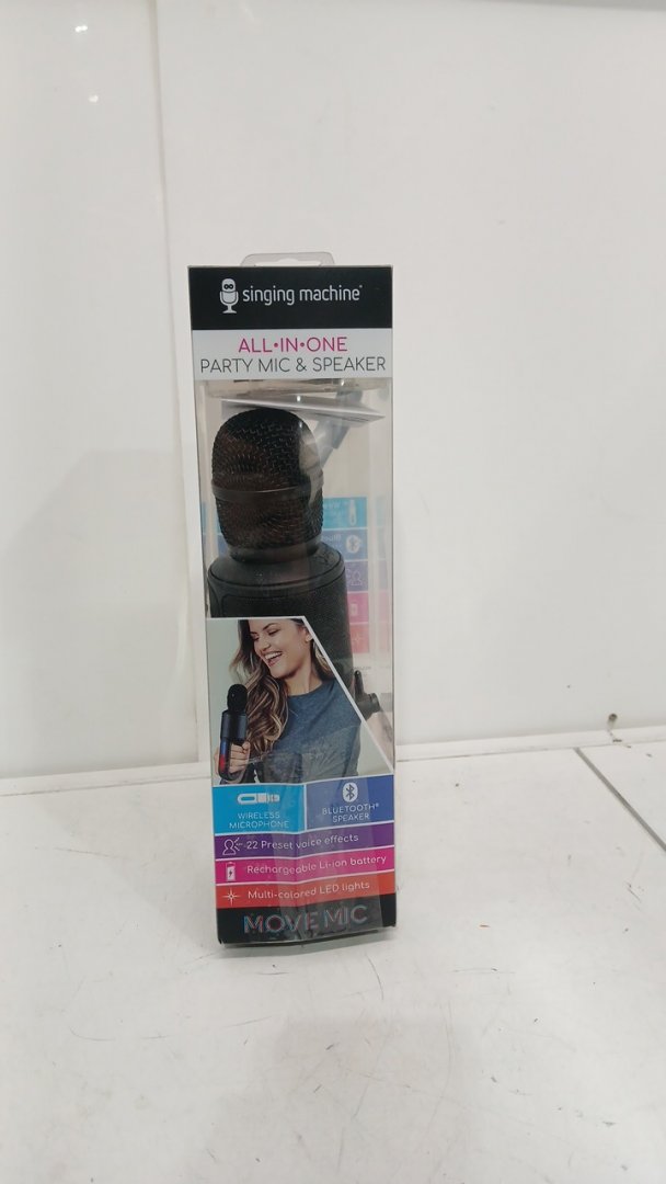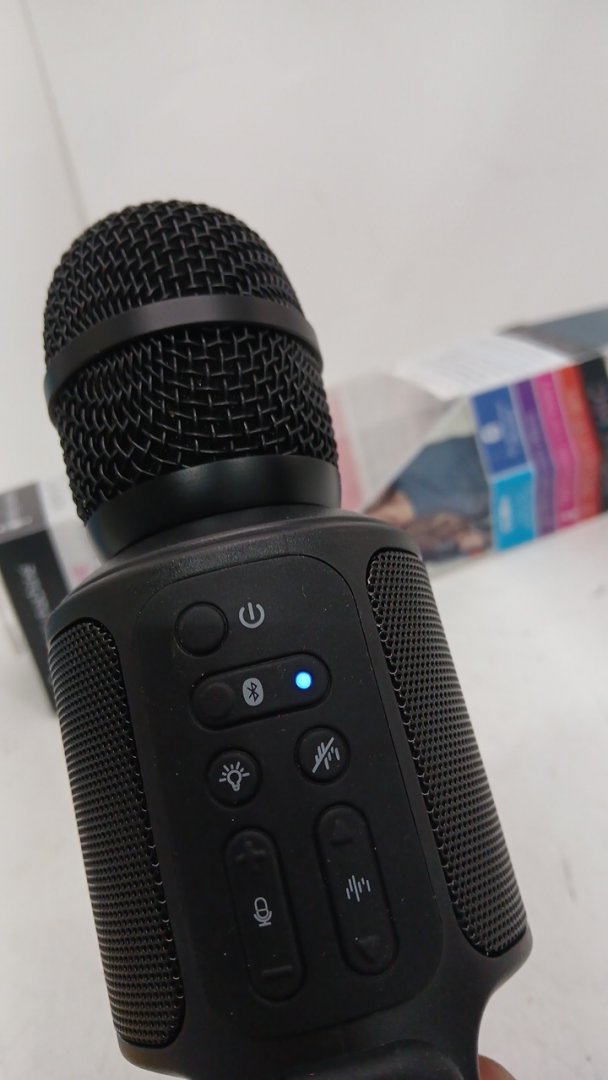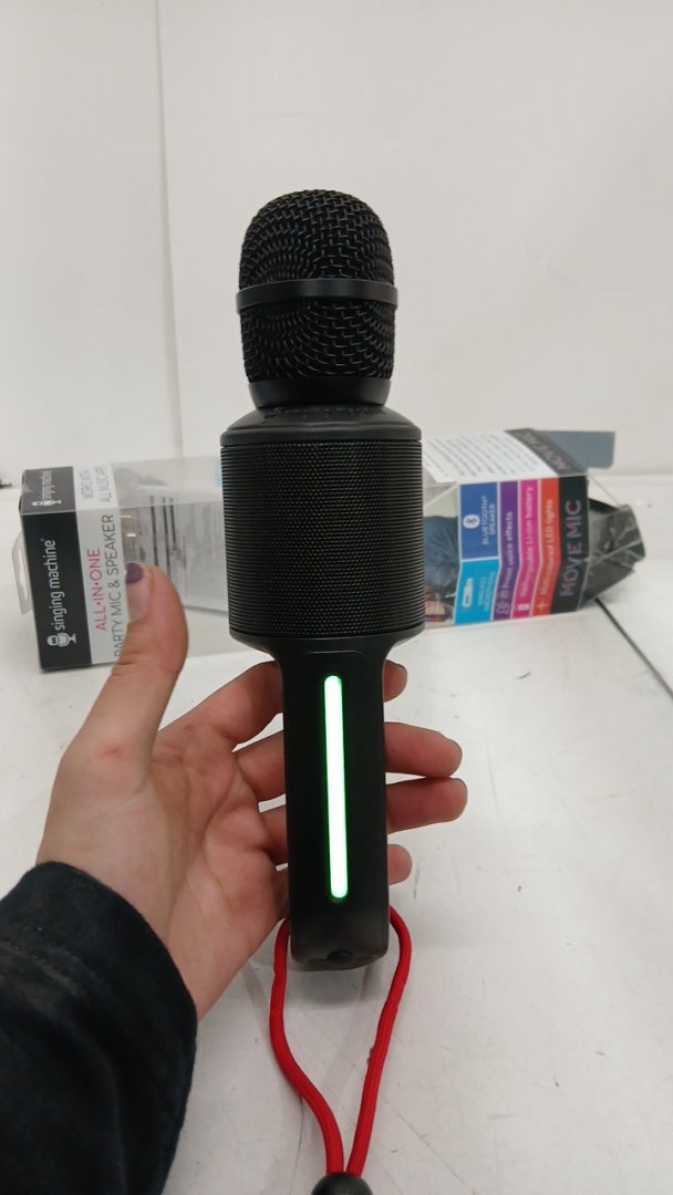 singing Machine Portable Handheld Bluetooth Karaoke Microphone and Speaker with Synchronized Lights and vocal effects - black (model: smm575)