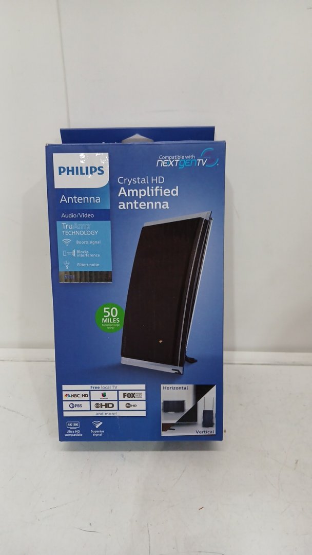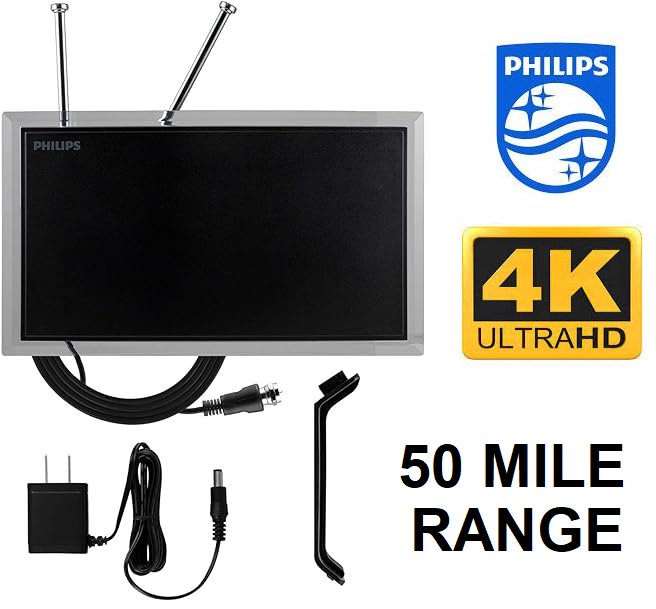 Philips Crystal Amplified Indoor TV Antenna, Extendable Dipole Rabbit Ears, 4K 1080P VHF UHF, Long Range, Amplifier Signal Booster, Digital HDTV Antenna, Smart TV Compatible, (MODEL: SDV3237N/27)
