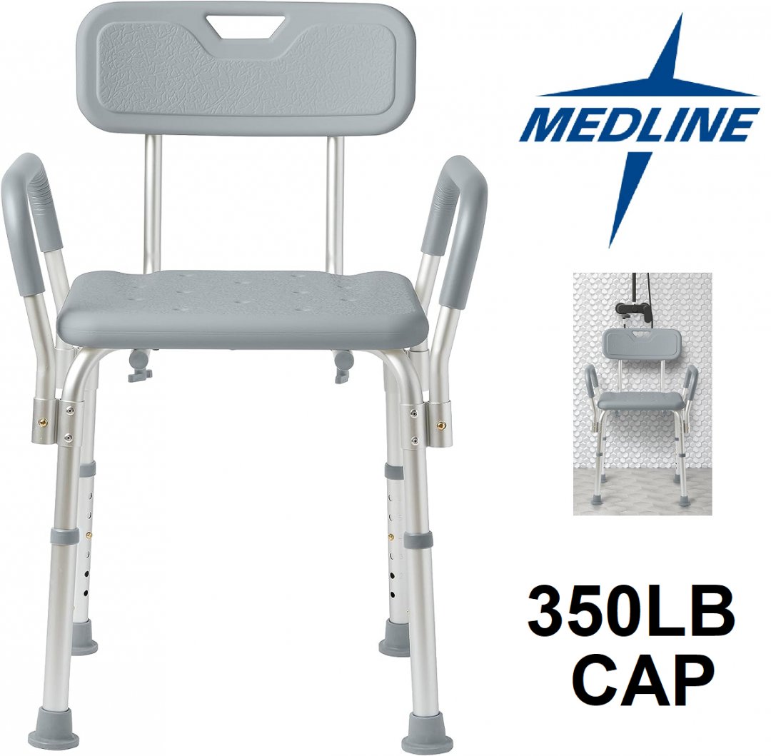 medline guardian bath chair with back and arms - 350lb cap - grey (Model: G2-100khx1)