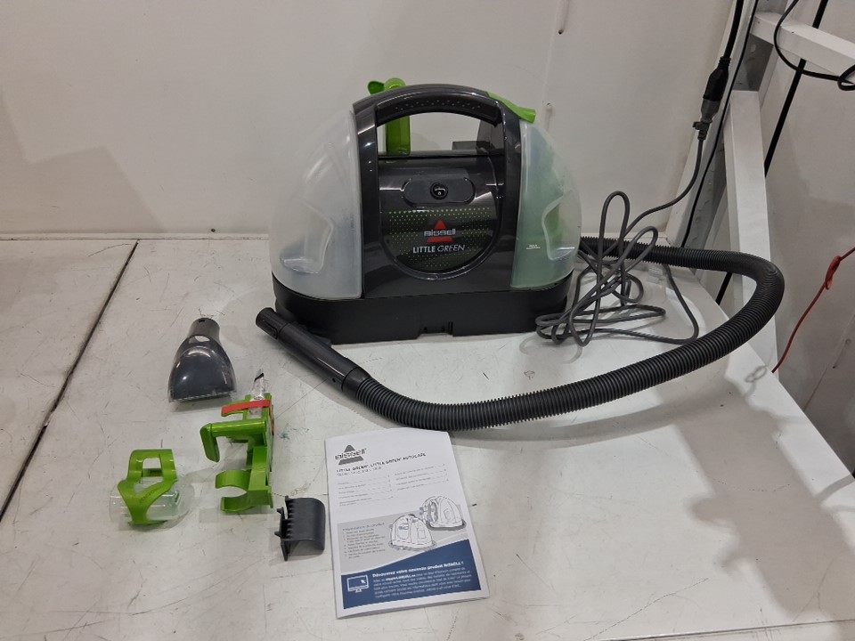 please note there are signs of light use inside the tanks and the nozzle head, as well as the cleaning supply is missing, power was tested successfully