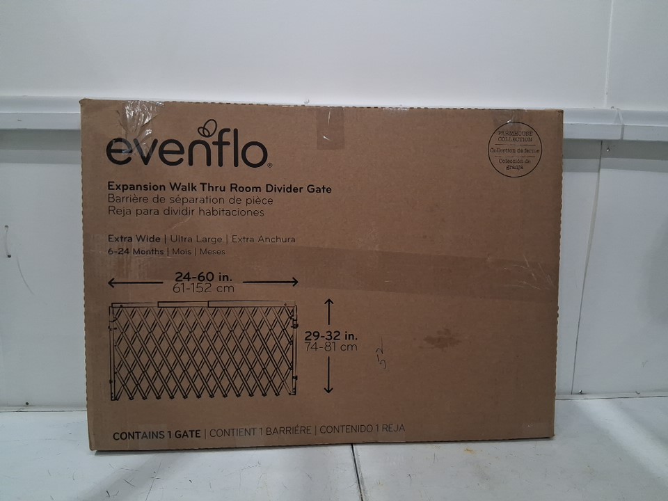 EVENFLO WALK THRU EXPANSION FOLDING BABY/PET GATE - 32" X 24" TO 60" - FARMHOUSE COLLECTION BROWN (MODEL: 1603200)