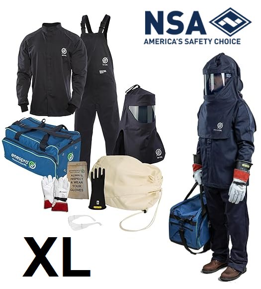 National Safety Apparel ArcGuard Ultrasoft Arc Flash Kit with Short Coat and Bib Overall - 40 CAL - EXTRA LARGE - GLOVE SIZE 10 - NAVY BLUE (MODEL: KIT4SC40XL10)