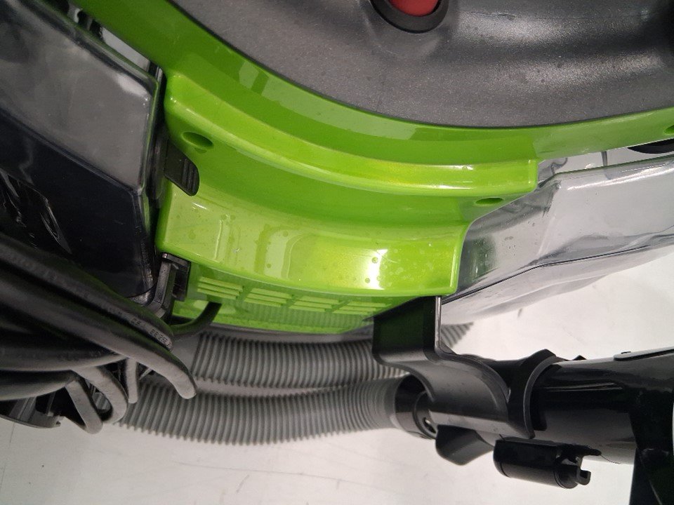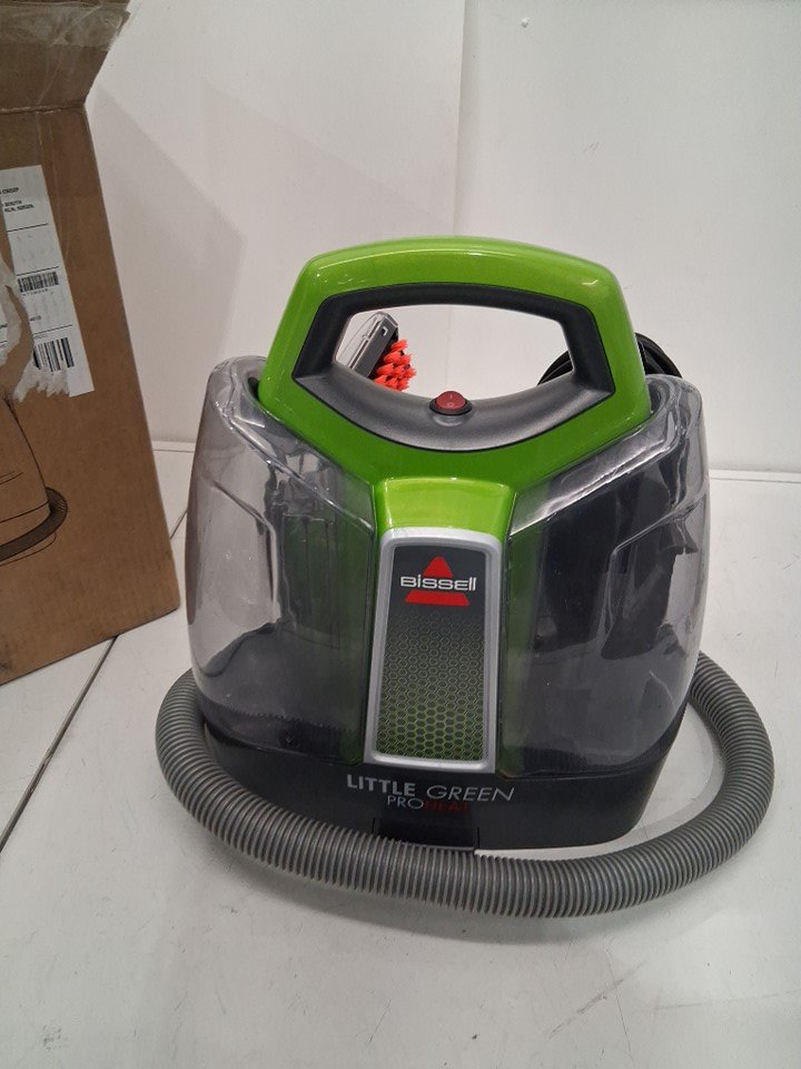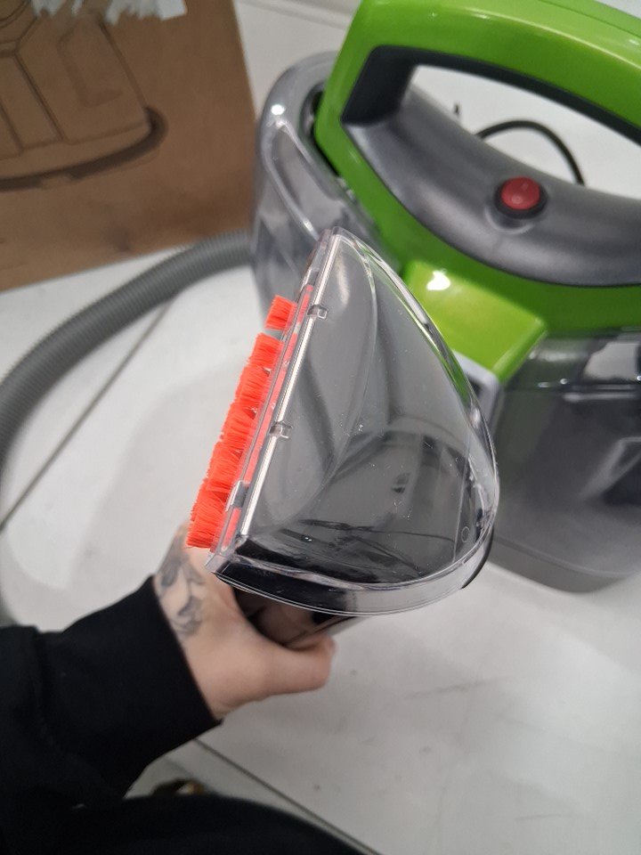 steam cleaner has water in cannister and water spots on outside of it. Cleaner is missing, has been tested for power (no indicator light)