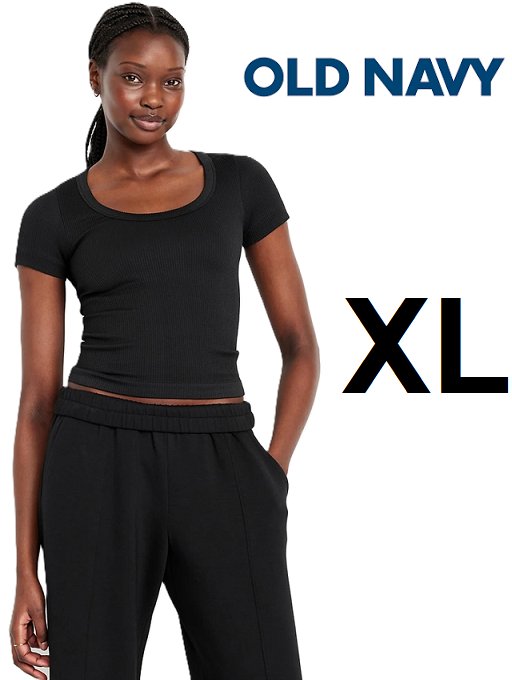 WOMEN'S old navy exhale seamless scoop neck cropped ribbed t-shirt - extra large - black (style: 750598-01-4)