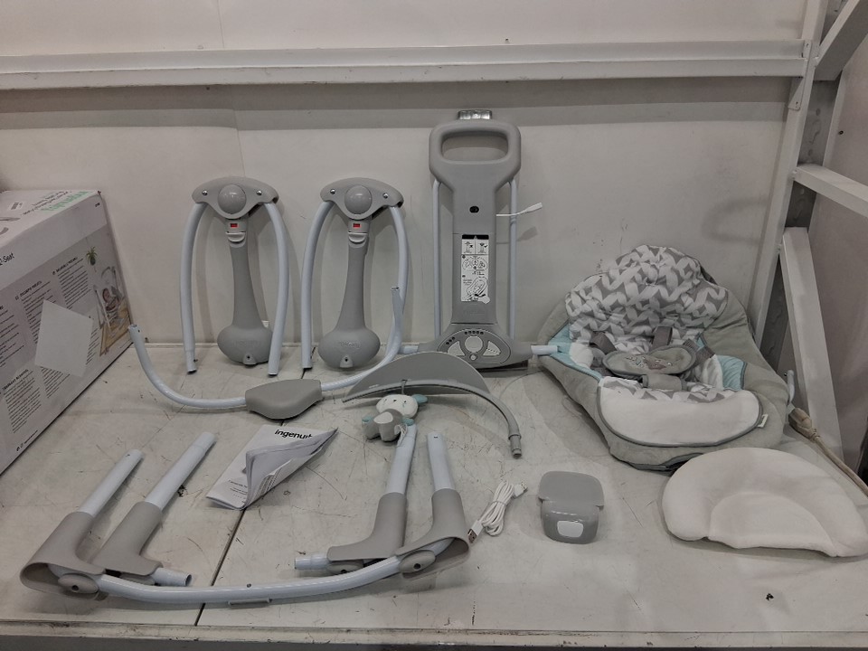 INGENUITY CONVERTME SWING-2-SEAT corded PORTABLE SWING - OM to 9M - RAYLAN FASHION / grey (MODEL: 12189-es)