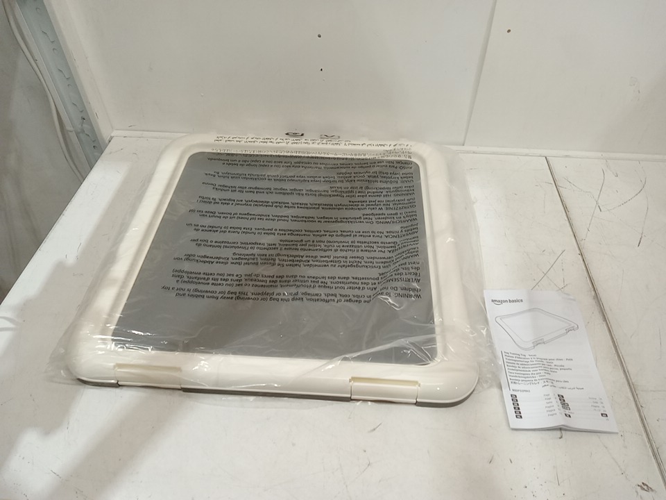 Amazon Basics Extra Thick and Non-Slip Dog Training Pad Holder with Secured Latches - 22" x 22" - White/Charcoal grey (Model: B0DP3ZP9VJ)
