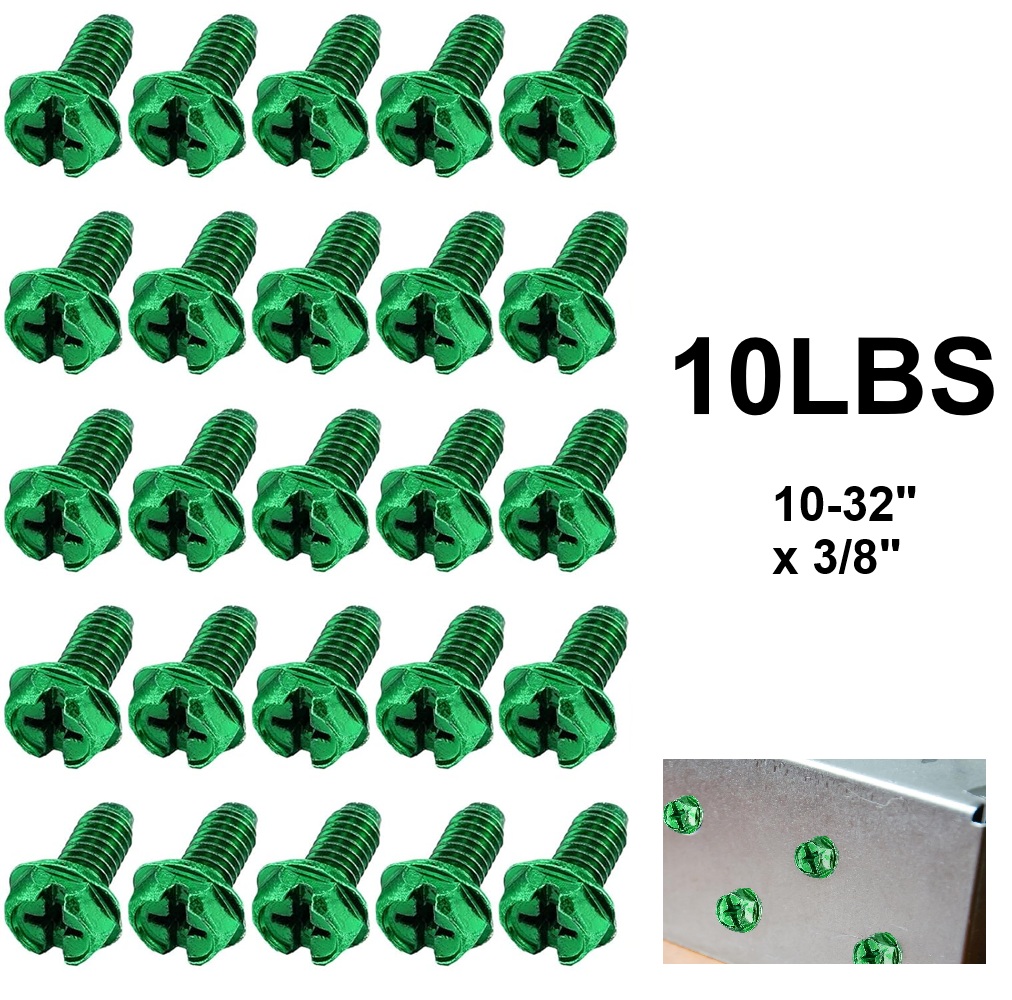 10lbs Thread Forming Grounding Screw, Hex/Phillips/Slotted/Square Drive, Steel -10-32" x 3/8" - green