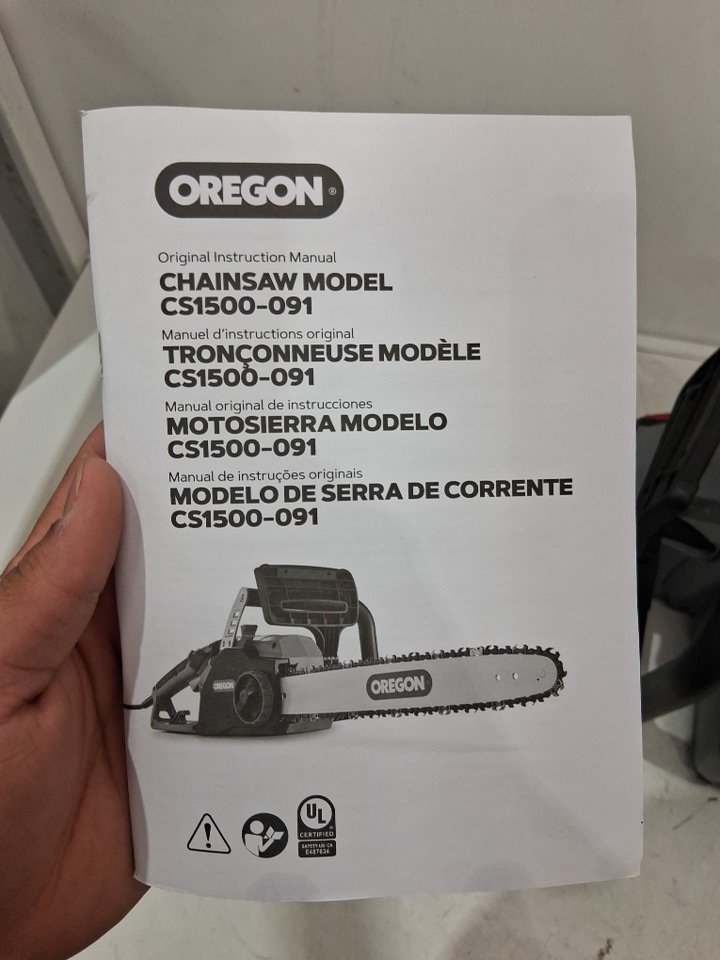please note that the item has dust on the handle and some wood powder on the chain, indicating light previous use (see photos). tested for power.
