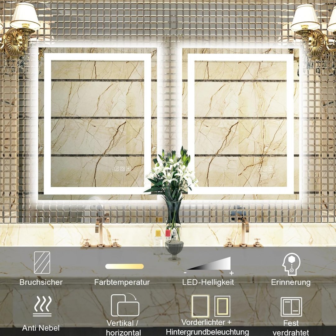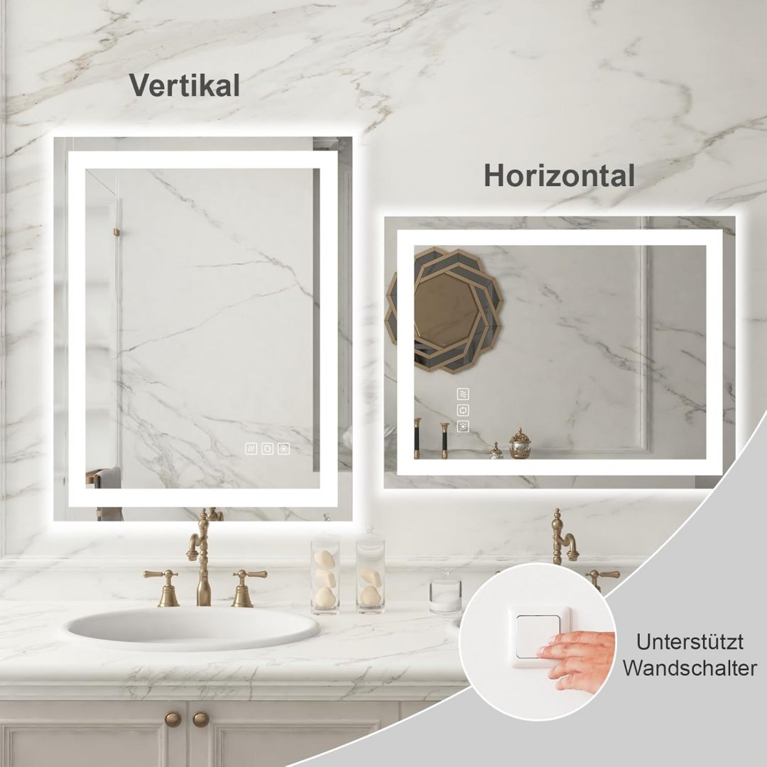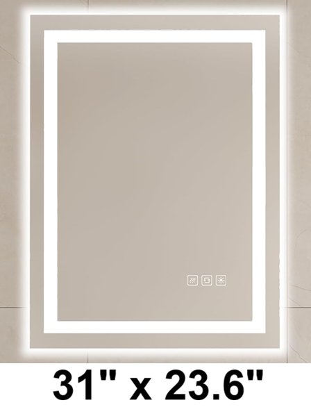 furduzz rectangular touch sensor backlit Bathroom Mirror with LED Lights 31" x 23.6" - white (model: ‎IL-01-80)