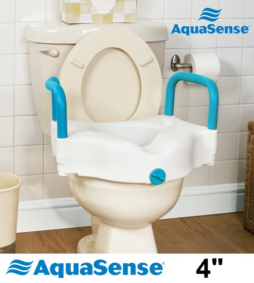 AQUASENSE 3-WAY RAISED TOILET SEAT - 4" - WHITE/BLUE (MODEL: ‎770-618)