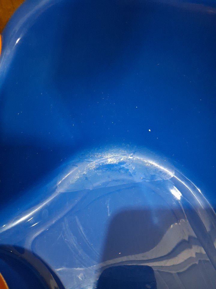 please note that the hose is slightly damaged and bended and some powder stains present inside the bowl (see photos).