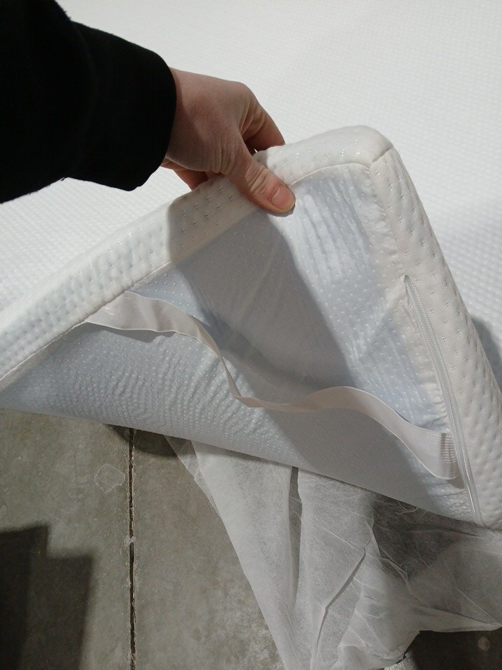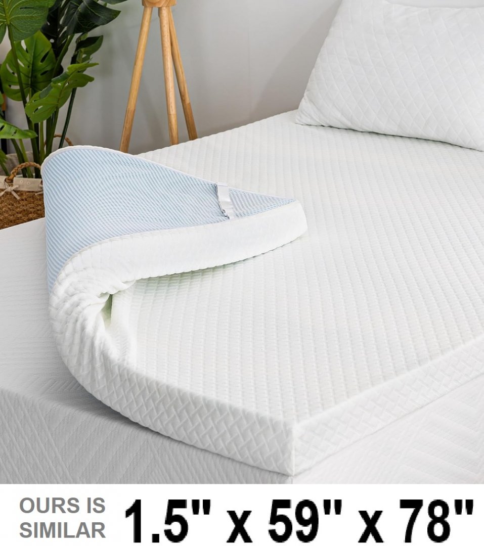 Memory Foam Mattress Topper with Removable Breathable Soft Cover, elastic stay put corners - 1.5" thick, 59" x 78" - white blue